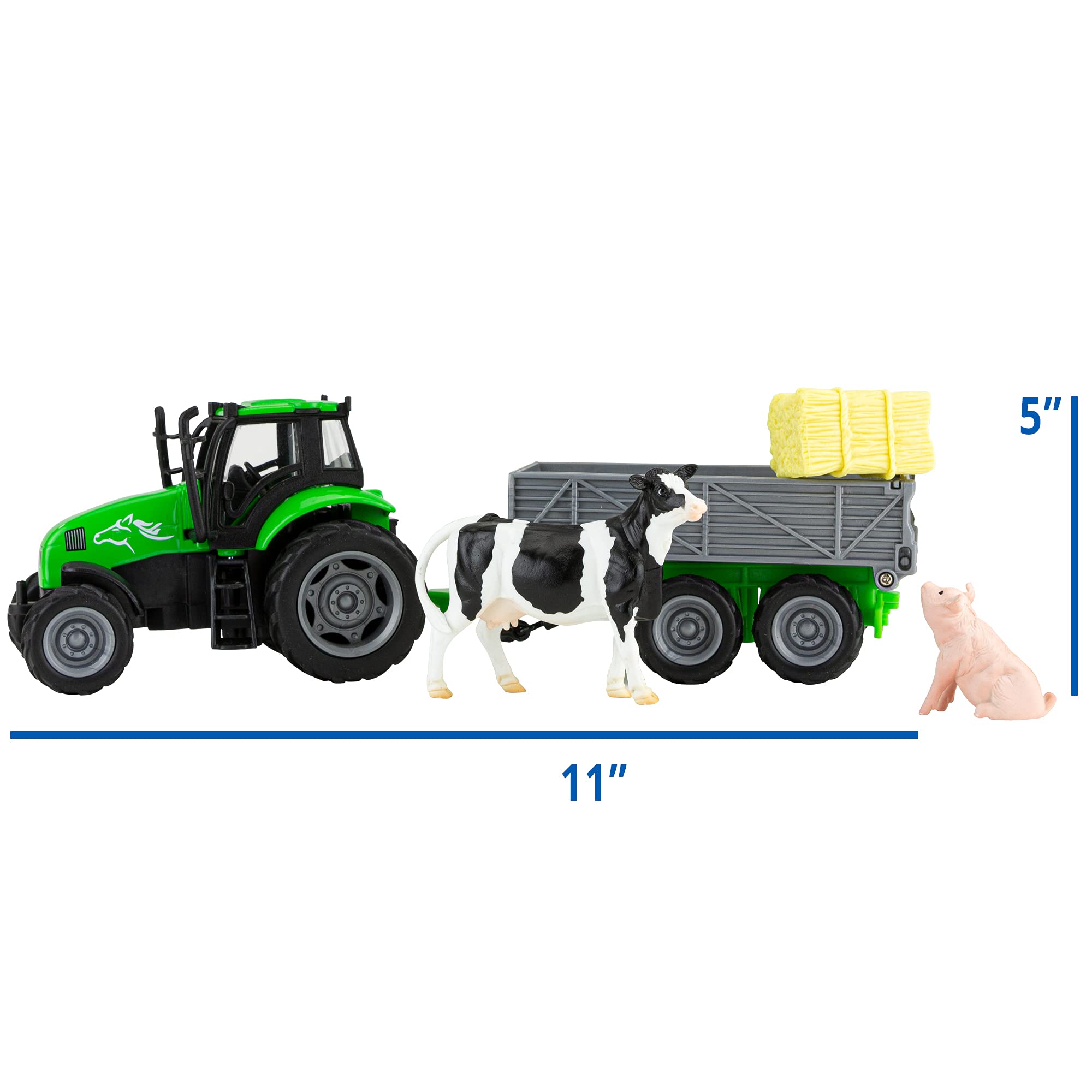 - PRODUCT SPECIFICATIONS: Package contains (1) Breyer Farms Tractor and Tag-a-long Wagon measures 5”H x 11” L x 4” D , 1 Cow, 1 Pig and 1 Hay Bale. Stablemates 1:32 Scale. Recommended for ages 4 years and older.