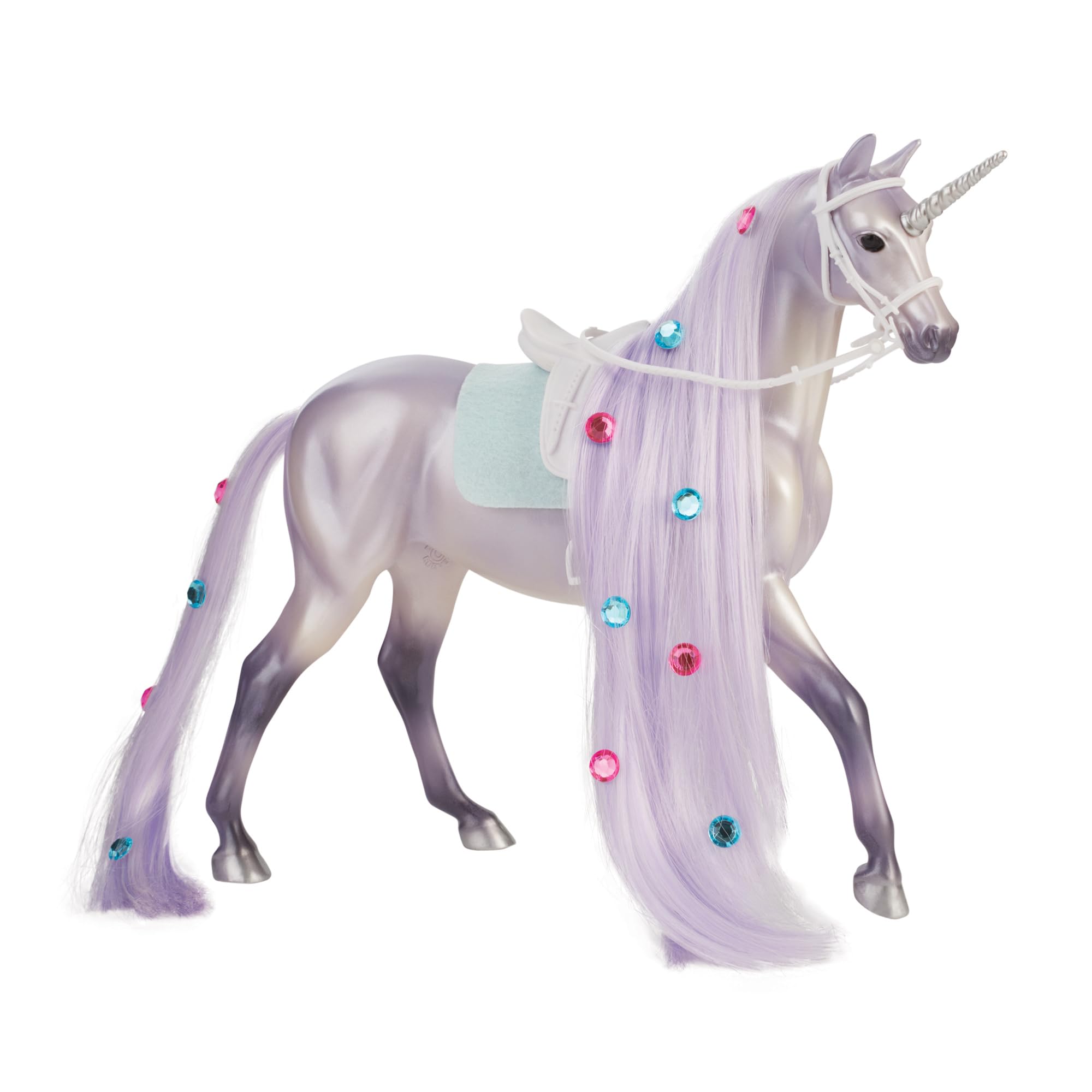 - Why You’ll Love It: Moonstone is a pearlescent lavender unicorn with an extra-long flowing mane and tail. She’s outfitted with a light blue saddle pad, a classic white English saddle, and a matching bridle. Twila, her rider, features long purple hair, a shimmering blue-and-purple tutu outfit, and elegant white riding boots.
