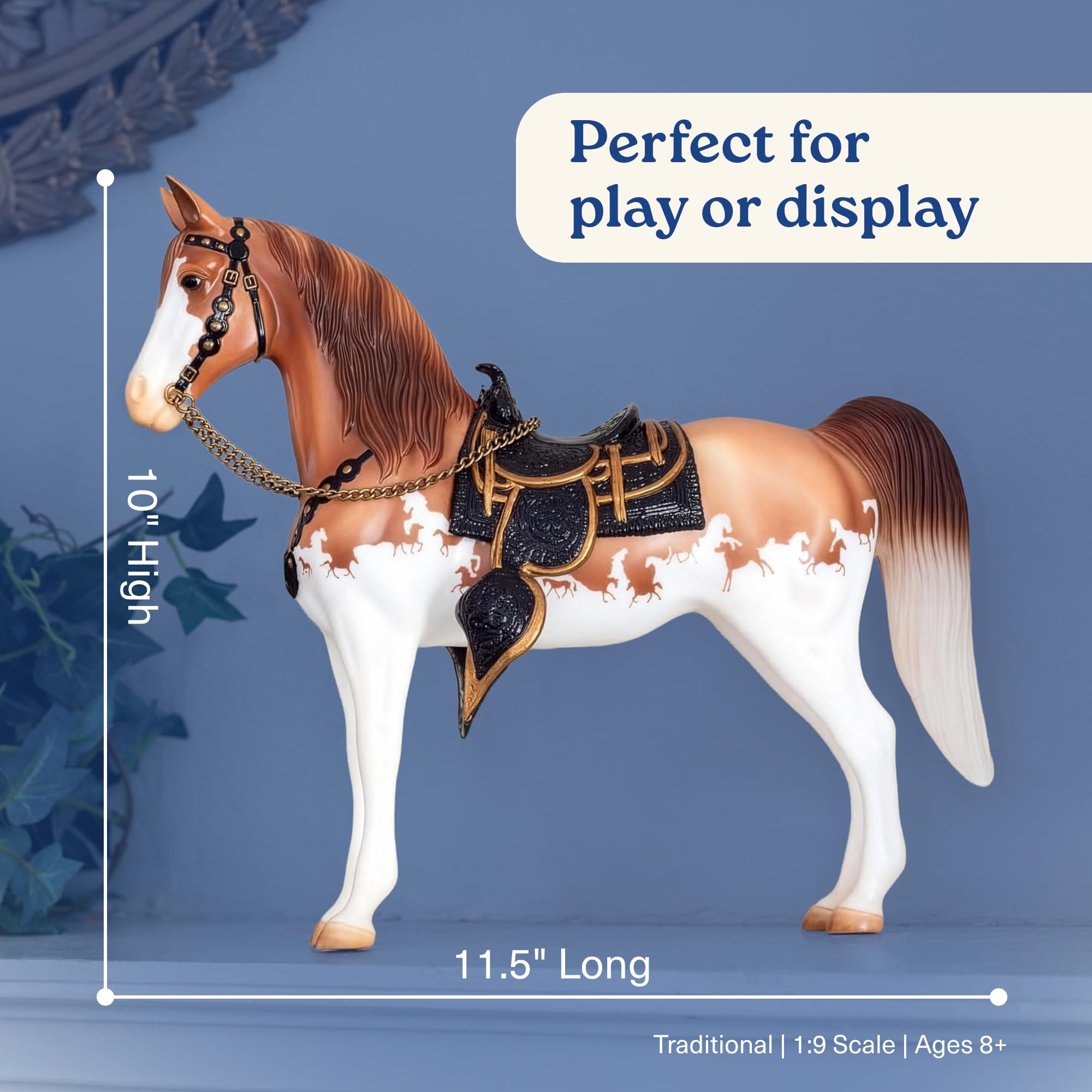 - CELEBRATING 75 YEARS OF BREYER LEGACY – Honor the iconic brand that began in 1950 with its very first model, the #57 Western Horse. This anniversary tribute brings the original Chris Hess sculpture to life. It features a striking red dun pinto coat and a signature gold-accented tack. This is an essential showpiece for every dedicated Breyer collector.