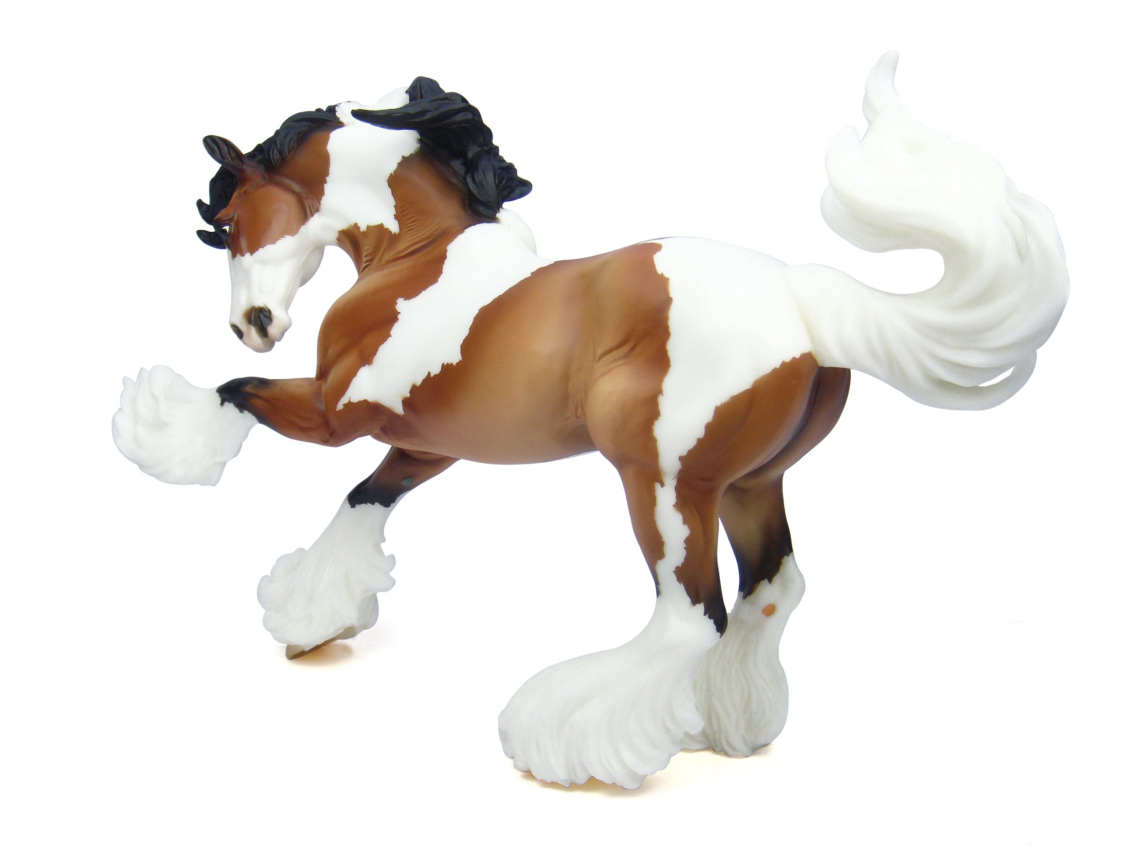 - This hand-painted Gypsy Vanner has a beautiful skewbald (bay and white pinto) coat.